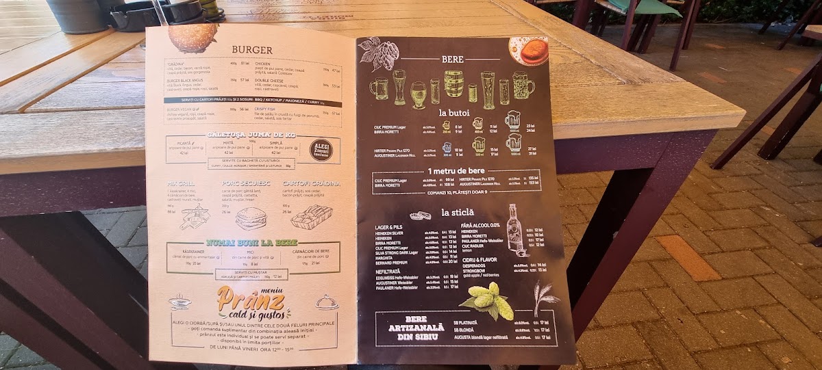“ Place is about ten minutes from city center. Big and nice garden with shades for the summer. Nice ambient inside with friendly stuff. Food prices are high similar with downtown. We had sheep pastrami with polenta and pickles and grilled pork neck. Absolutely delicious . Wine collection is nice Beer price is fair, about 1.6 € per bottle Ah, and you should get a “Pălincă” as appetizer spirit Bonus points for health checks before entering the facility ”